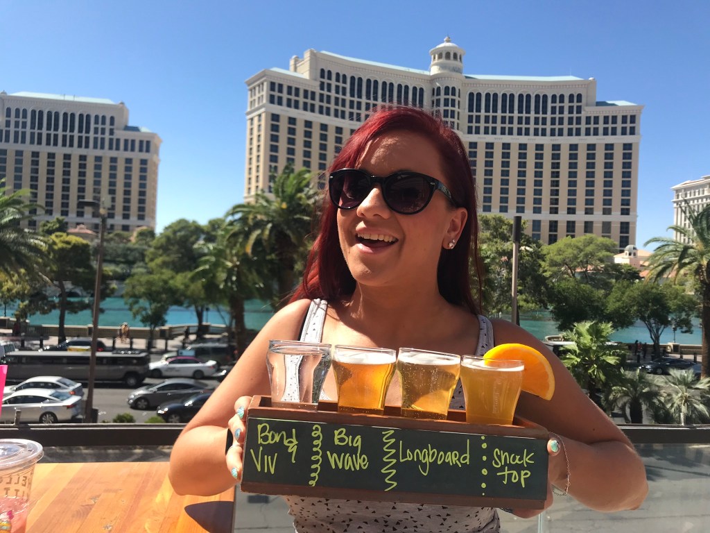 Beer Park β outside Paris Hotel opposite the Bellagio. Ok so I didnβt eat here but I know they serve great food alongside some amazing beer & cider selections. I hear the mac n cheese rolls are amazing here. The beer flight is $16 and well worth a visit to enjoy a beer with a fabulous view!