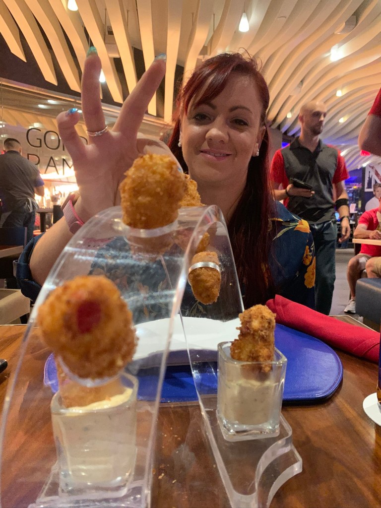 Expect a little bit of a wait/queue to get in here as seating is on a first come first servedΒ basis. I have to say I kind of wish we hadnβt bothered with a starter because one; I wasnβt that impressed with the duck poppers (not much duck in them and a little bit greasy) and two; the burgers were superb but we struggled to finish them! βFrom traditional to unique burgers, the menu items at this Las Vegas restaurant use the freshest, quality ingredients. Beef patties are cooked over an open flame fuelled by hard woods β Gordon Ramsay Burger is the only gourmet burger restaurant on the Strip to use this method β creating a more complex and powerful flavour.β