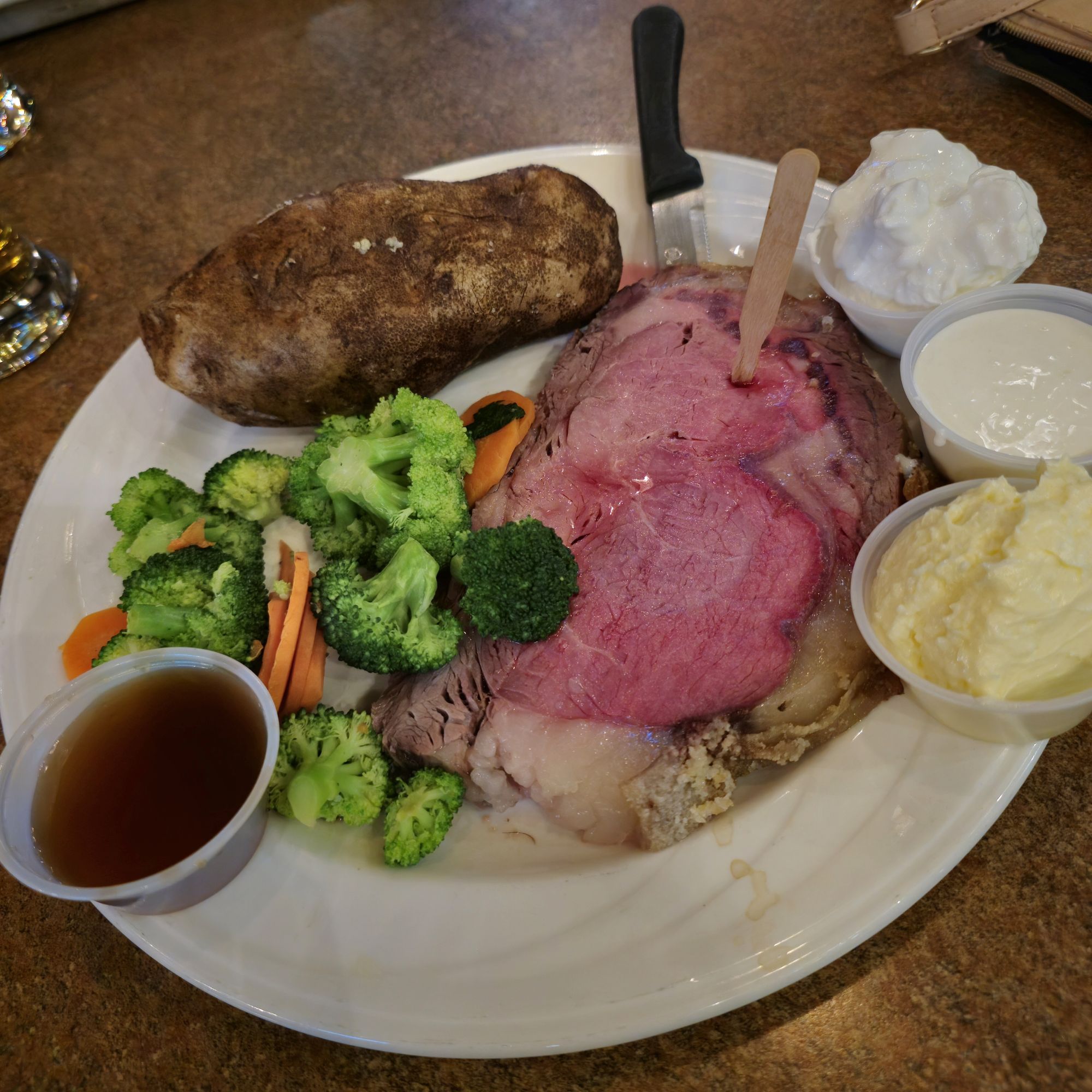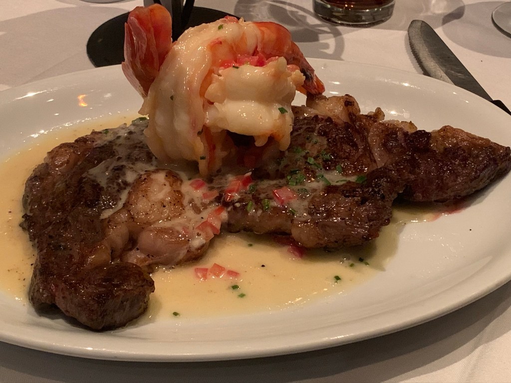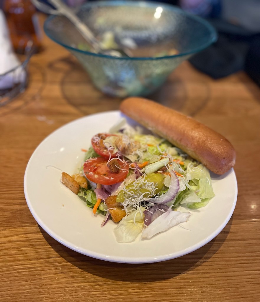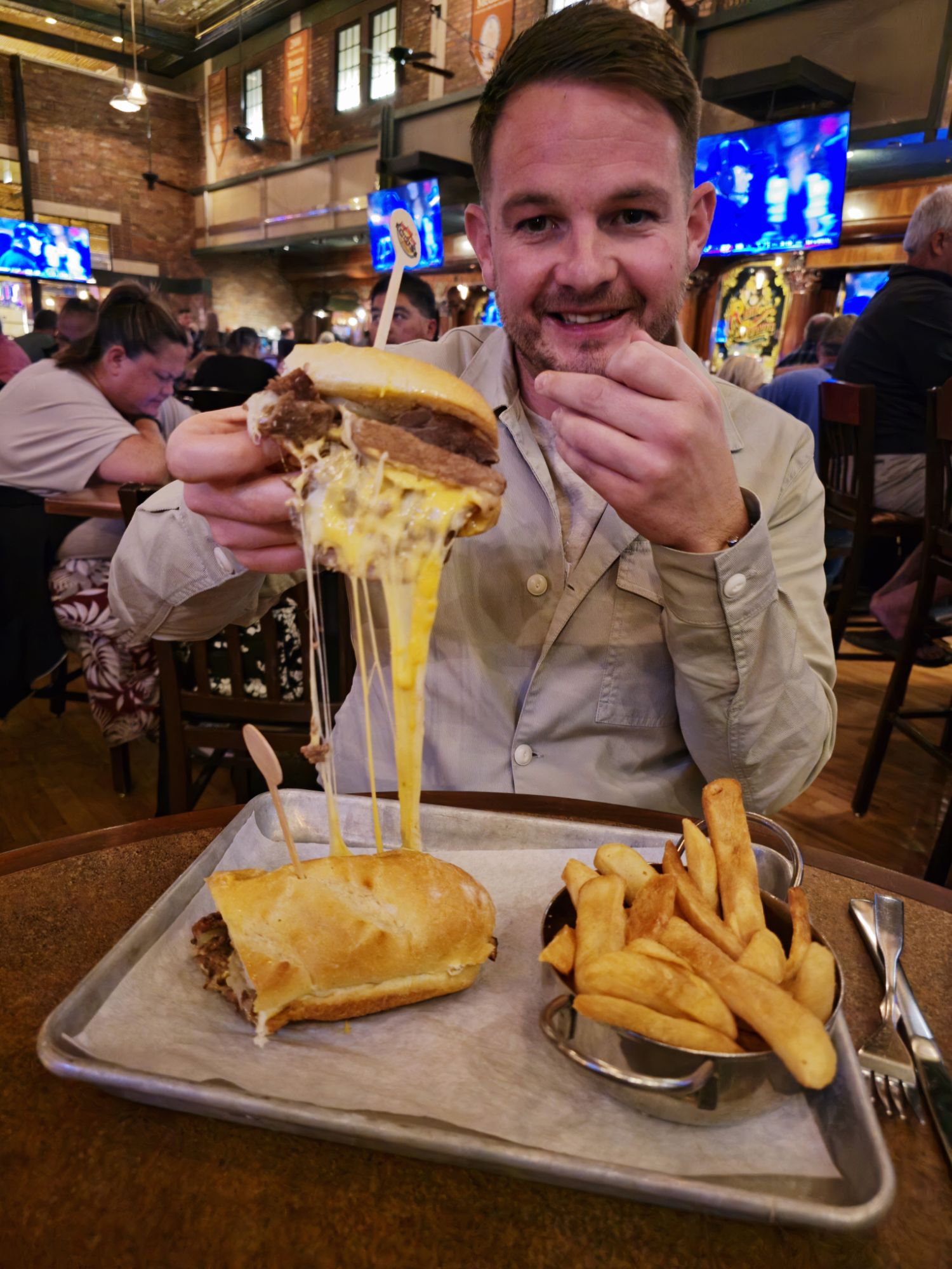 On our most recent trip in Nov 2024. we enjoyed a mammoth meal at Triple 7 Restaurant & Brewery based in Main Street Casino & Hotel near Freemont. I went for the Prime Rib; slow-roasted ribeye, fresh vegetables, choice of seasoned fries, steamed rice, baked potato or buttery mashed potatoes, au jus, horseradish cream. This was soooo much food, but it was really good. Ben chose the Philly Cheesesteak; shaved beef, onions, provolone, cheez whiz, warm steak roll. This was suuuper cheesy as you can see.