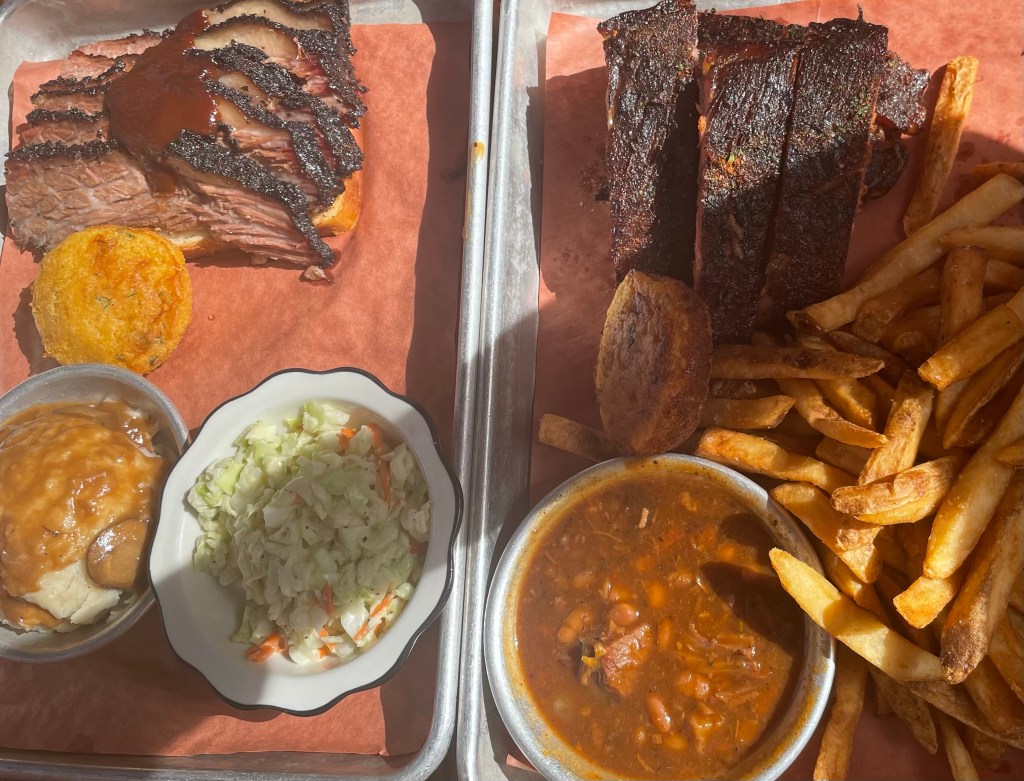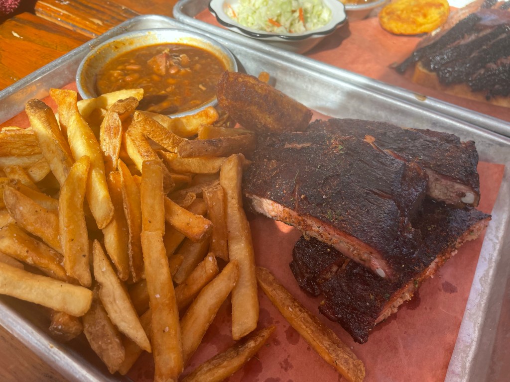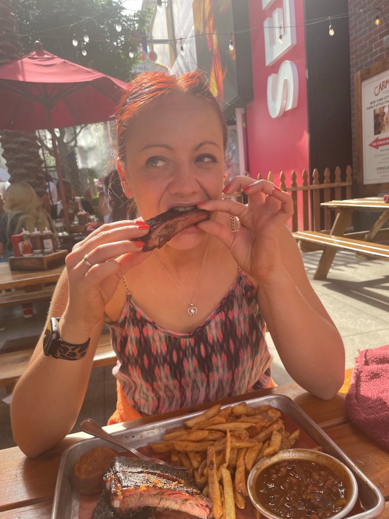 Virgilβs BBQ β serving great BBQ trays; choose your meat and sides and enjoy a very tasty feast. Virgilβs is based down Linq Promenade just off the strip and you can catch some goods deals including a happy hour but watch out as you have to sit at the bar to get the happy hour offer π¦ I enjoyed ribs with pit beans and skin-on fries, Ben enjoyed brisket with slaw, mash and gravy and we both got cornbread too. Very delicious food and very tender meat that melted in your mouth. Would recommend eating here. I think this was actually our only full meal on our last visit to Vegas because breakfasts and βsnacksβ were always so huge!