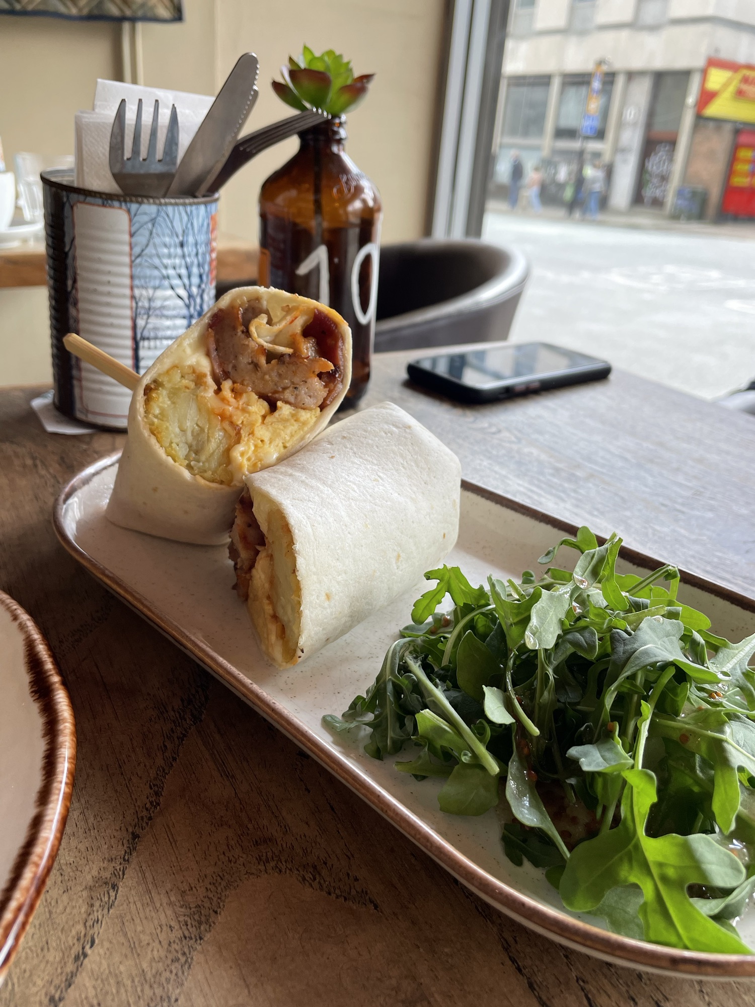 - The Full Monty Breakfast Burrito (£9.95)- tortilla wrap filled with Sausage, bacon, egg, hash brown and cheese! For those with less of a sweet tooth this is a perfect, tasty and filling brekky.
