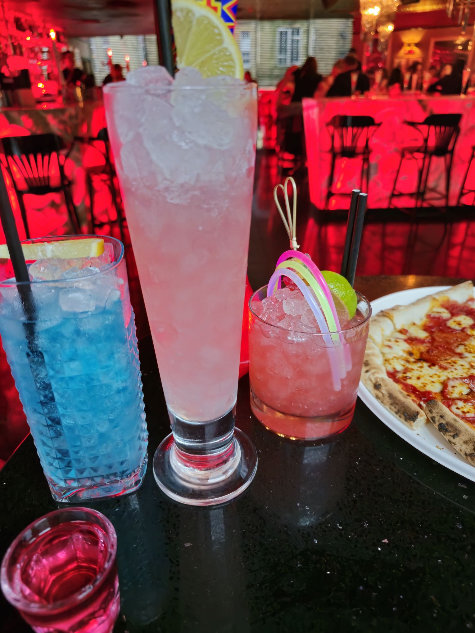 On Saturdays 3-5pm at Kuckoo, based at Leopold Square in Sheffield City Centre, enjoy countless cocktails (my friend and I had 3 each on our table within the first 15 minutes), plus all drinks menu available. When we were shown to our table, there were Proseccos, shots and a snack laid out for us – a lovely touch! We had countless cocktails and Proseccos that day. The staff clearly love this event too as they make it an amazing, lively atmosphere as you enjoy your drinks, lots of pizza, singing and dancing along to the best tunes and some activities too.