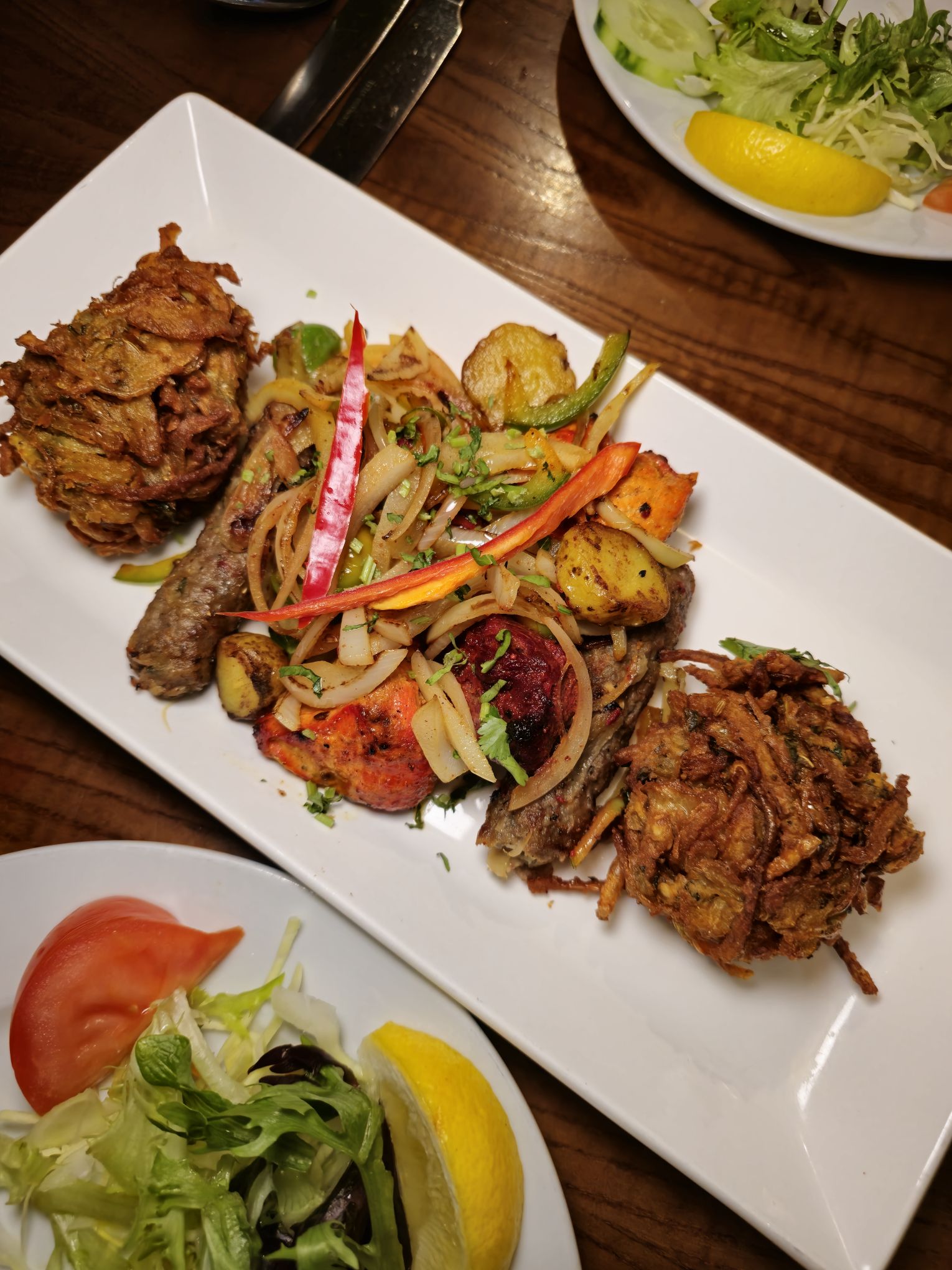 - Mix Raj Platter; Onion Bhaji, Lamb Tikka, Chicken Tikka & Sheek Kebab – plenty for 2, and everything was spot on.️