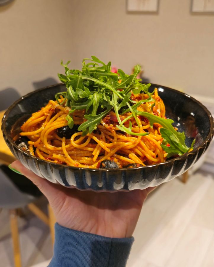 We do love a good spicy pasta dish in our house. So when I spotted some spreadable ‘nduja in the Lidl specials (of which we had some left after using most of it on some toasted sourdough), I used it to come up with this 5 out of 5, simple and delicious spaghetti dish. For those of you that may not have tried this tasty, meaty spread yet; ‘nduja is a soft, spreadable, spicy salami originating from the Calabrian region of Italy, known for its intense heat and smoky flavour. It’s made from pork, fat, salt, and Calabrian chili peppers. ‘Nduja is often used as a spread on bread, a pizza topping, or added to sauces and stews.