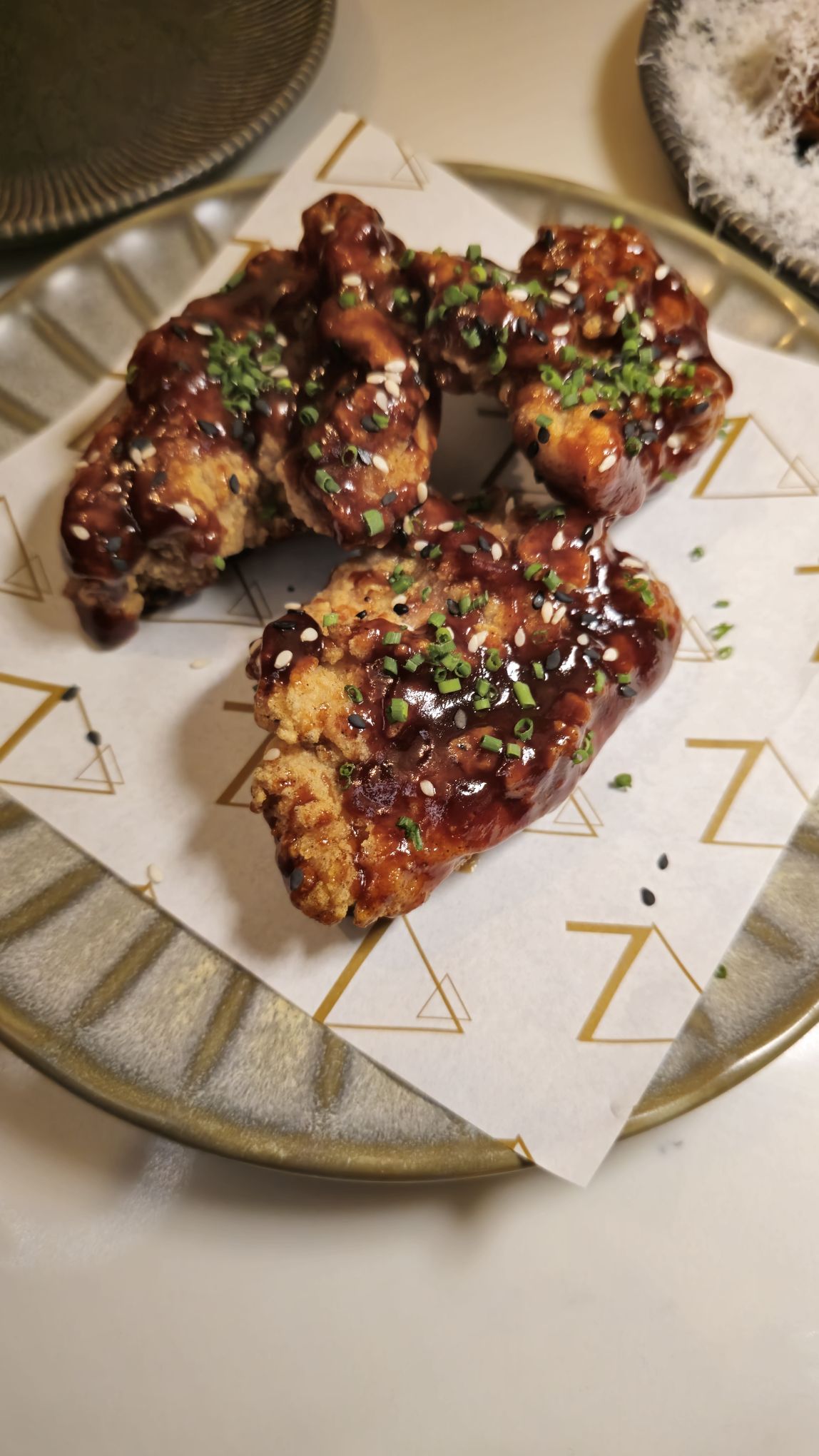 - Starters (or Small Plates as they are often called now); Psalter Fried Chicken with spring onion & BBQ sauce & Cheddar Doughnuts with sweet chilli jam. ️Yum! The Doughnuts are particularly cheesy. The chicken was really good. Great small plates to share between us.