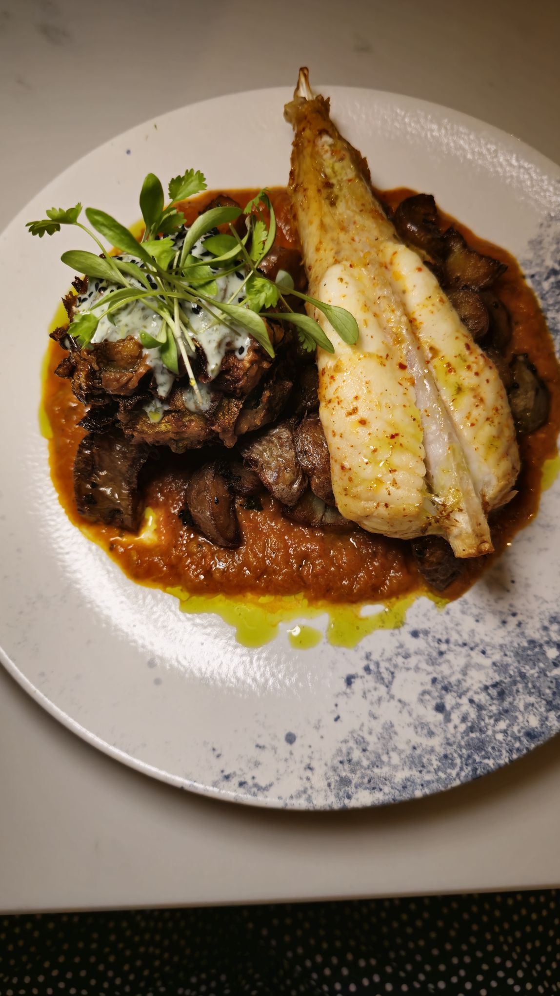 - Monkfish Tail with Madras sauce, Bombay potatoes & courgette fritter. This was such a rich, tasty dish. The courgette fritter was more like a bhaji 👌🏼👌🏼