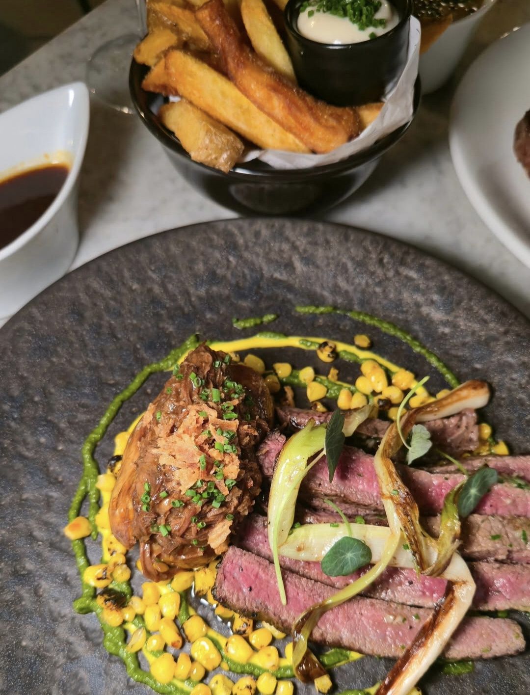 - BBQ rump of Yorkshire reared beef, with slow cooked brisket jacket, creamed corn, jalapeno & nasturtium “chimichurri”