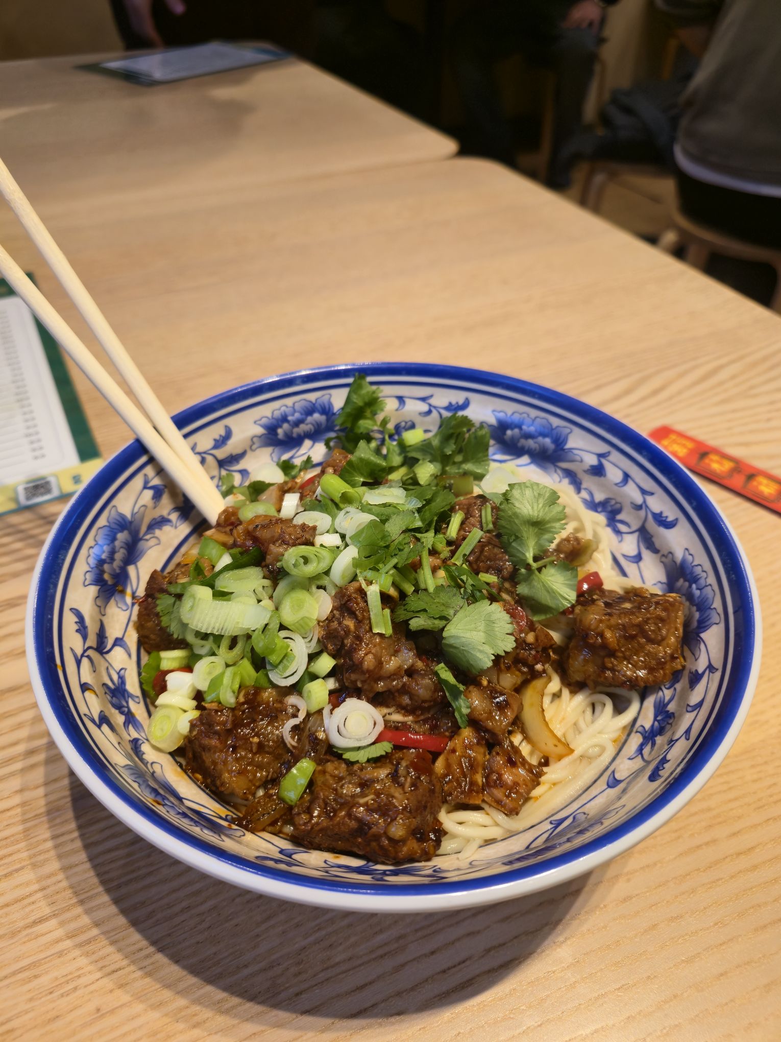 First stop on my mission to find the best noodles in Sheffield was Lanzhou on West Street. WOW – we both chose the Spicy Braised Beef Brisket with no broth and we both loved it!