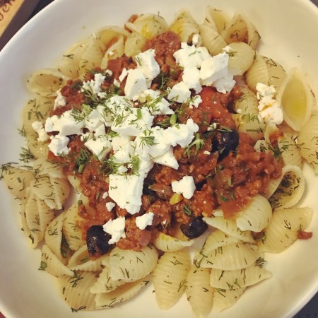 Greek Lamb Pasta with Feta & Dill