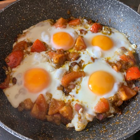 September 28, 2021January 30, 2022 Jen's Food Blog Ras El Hanout Pesto Eggs with Tomato & Onion Chutney